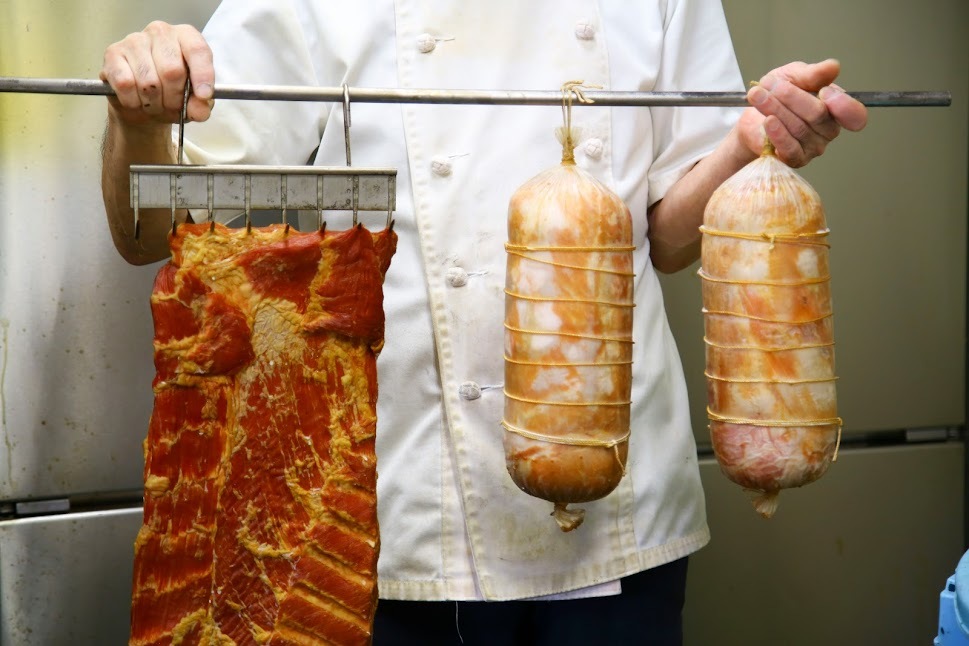 スライスベーコン・ ・ ・香辛料に1週間漬け込んだあと、低温でじっくりスモークした自信作。